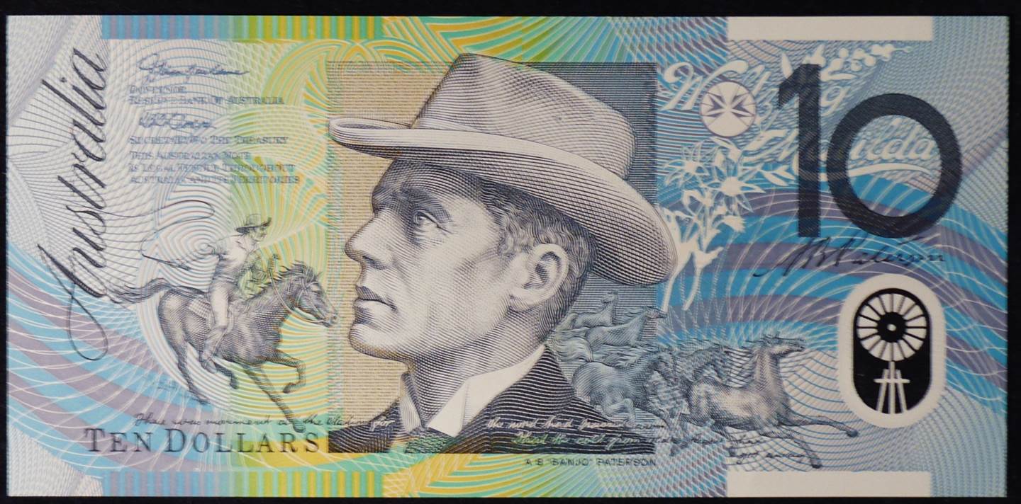 5. On one side of the note, verse from the poem The Man from Snowy River are microprinted in the area surrounding Banjo Paterson’s portrait and can be seen with the aid of a magnifying glass. Between each stanza of the poem are the words TEN DOLLARS.