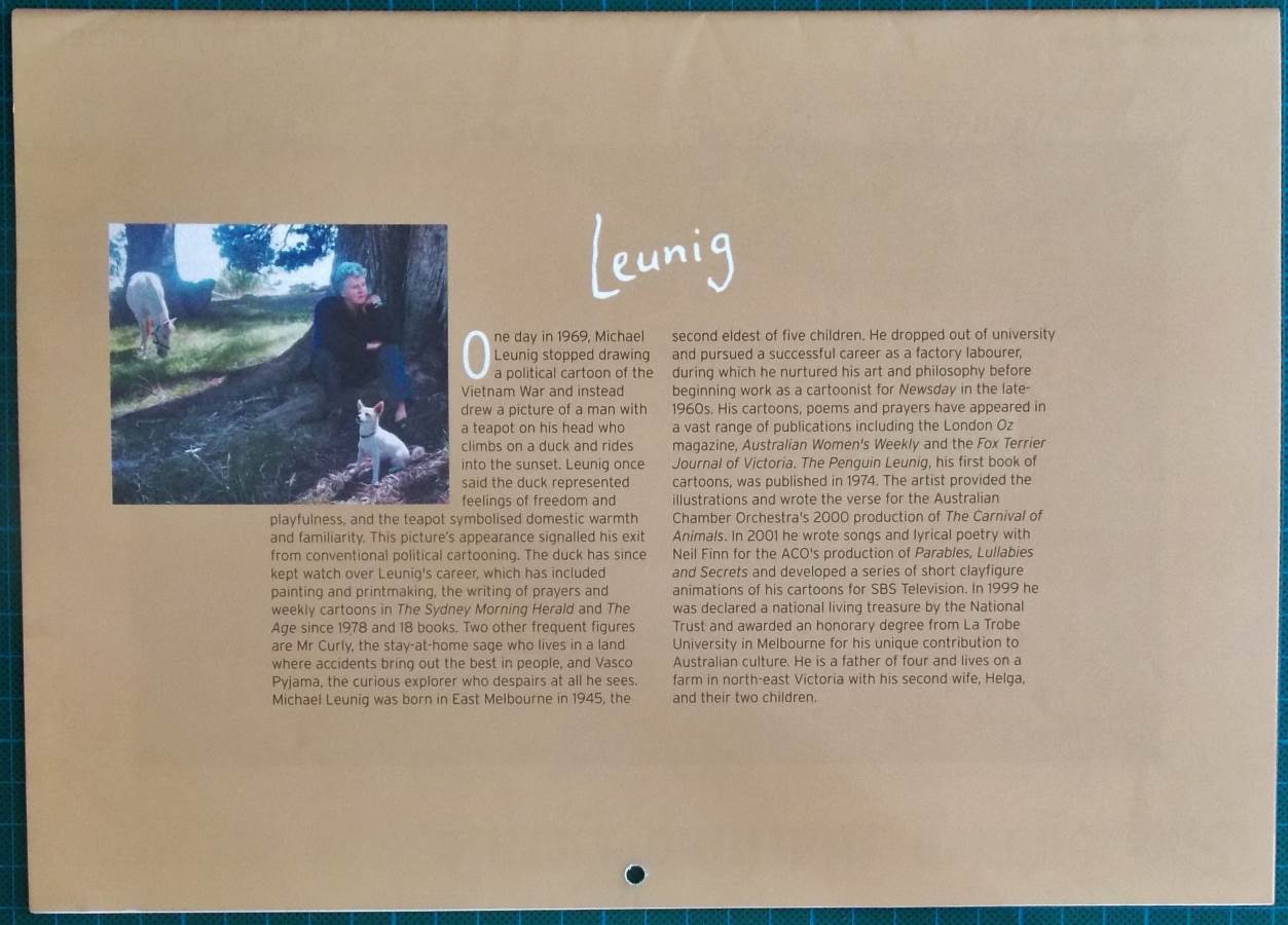 Seriously, finding a mint condition 2004 Michael Leunig calendar like this one is like winning the lottery. Most have long since been used, stored badly or thrown out once finished.