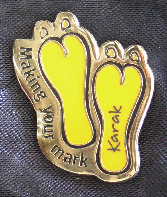 On offer here is a lapel pin with the words, “Making Your Mark”.