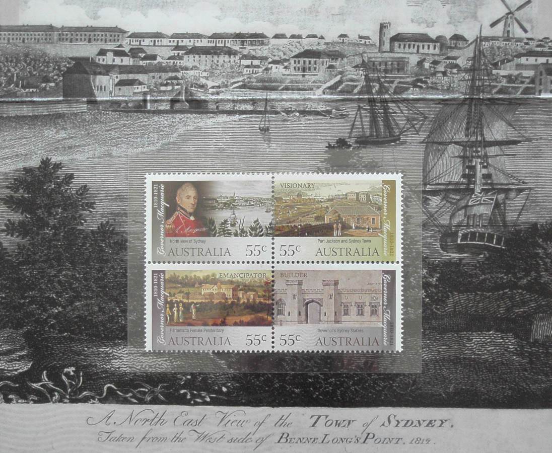 This delightful Stamp Pack celebrates the bicentenary of Macquarie’s governance. It contains two MNH blocks of four stamps that were designed by Stacey Zass that celebrate the importance of Lachlan Macquarie (1762-1824) as the Governor of New South Wales. During his time as governor (1810-1821),