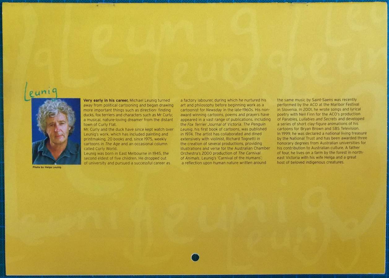 This 2011 calendar of Michael Leunig cartoons was printed by the Sydney Morning Herald and remains in as new condition awaiting a lucky collector or Leunig fan to purchase it.
