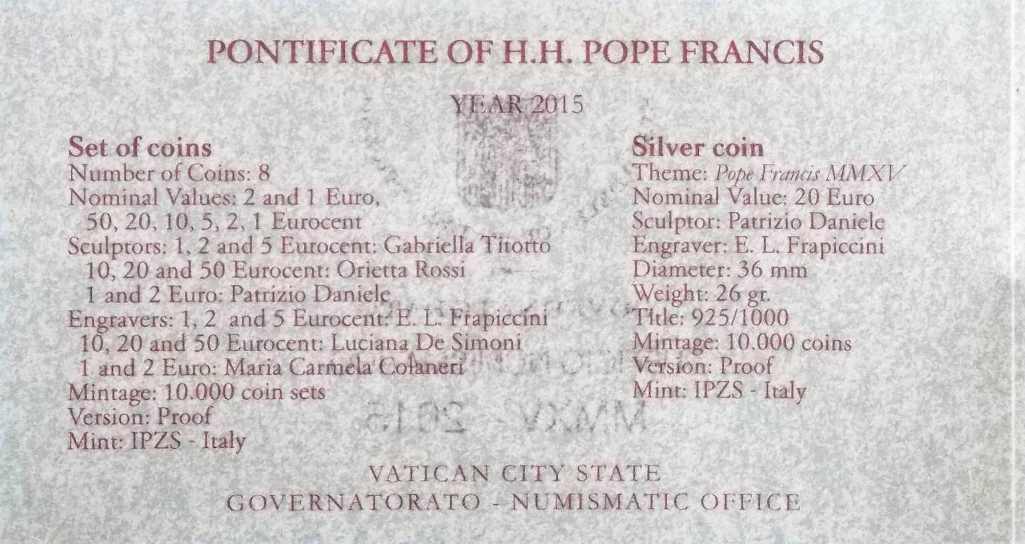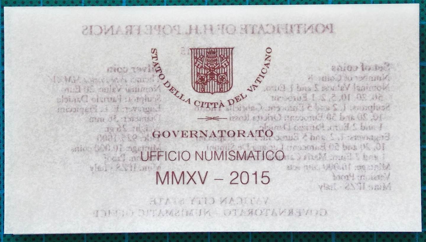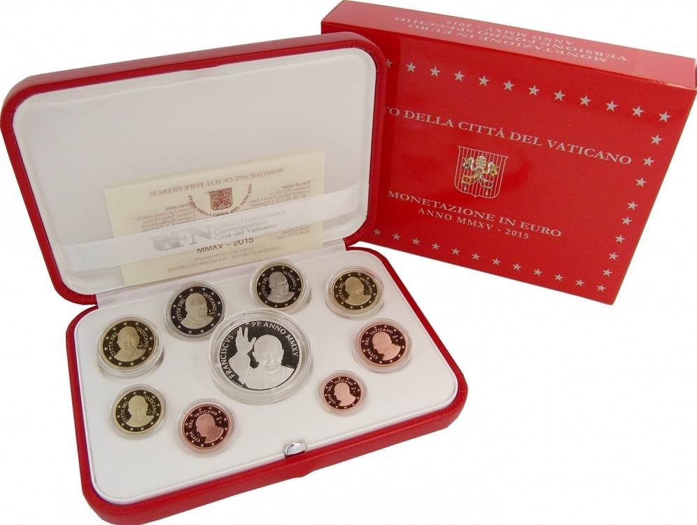 This is the 2015 circulation coin set from the Vatican mint in proof uncirculated condition.