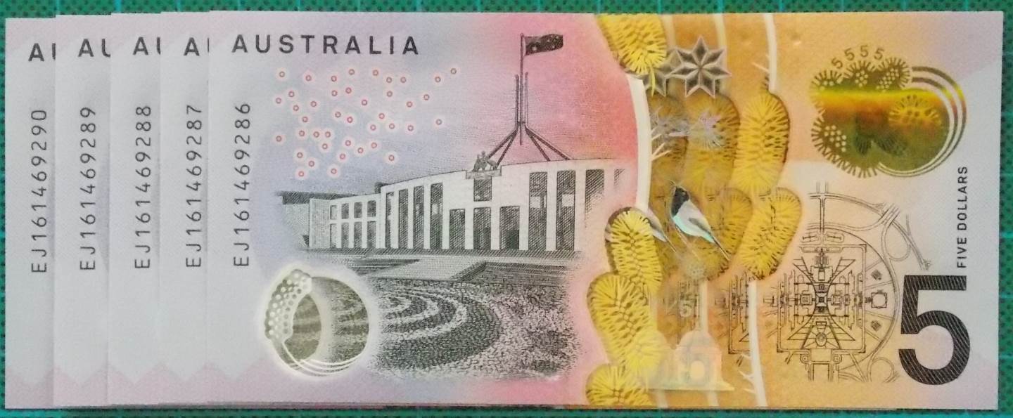 2016 Australia Five Dollars Next Generation Last Prefix EJ16 x 5