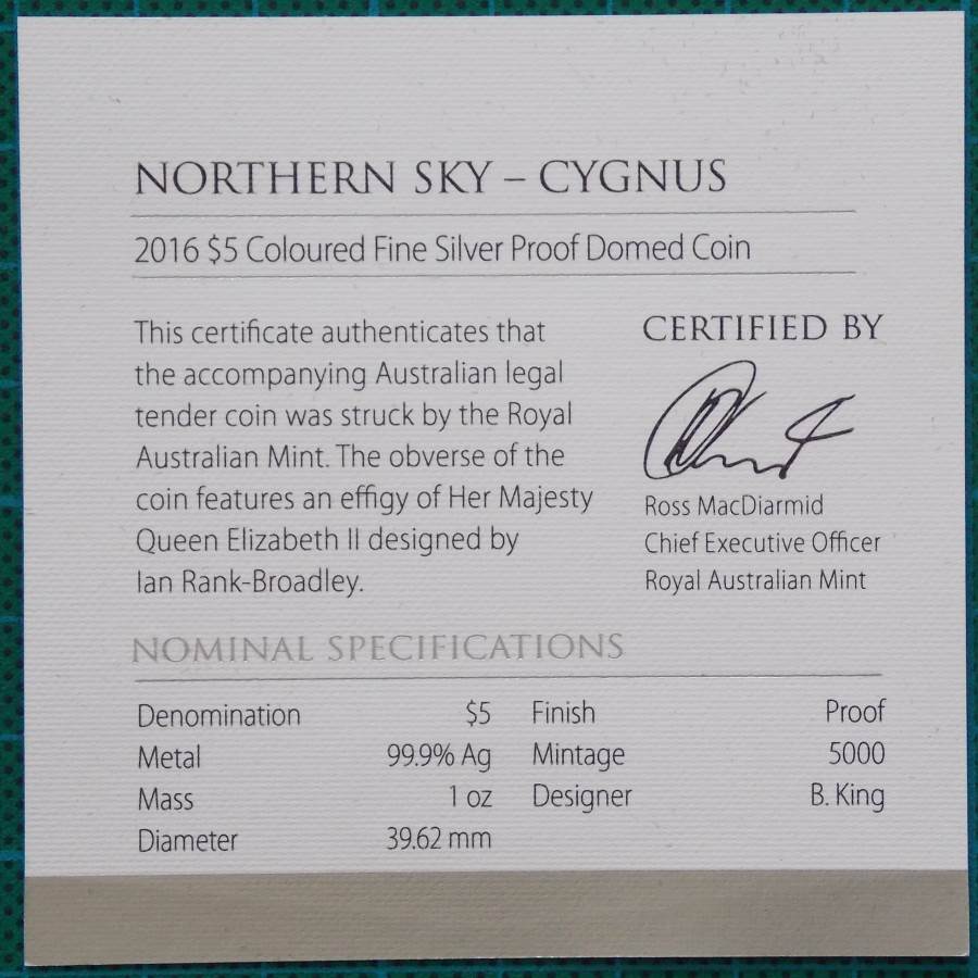2016 Northern Sky Cygnus $5 Silver Domed Coin