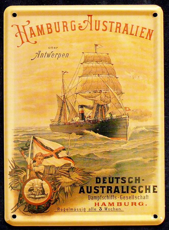 Hamburg to Australia over Antwerp.and below: German – Australian Steamship Company Hamburg regularly every 3 weeks.