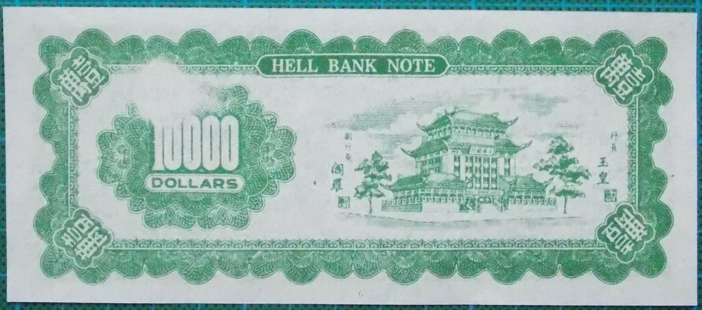 The rather grand pagoda on the reverse of this note and many others is often referred to as the Bank of Hell corporate HQ.