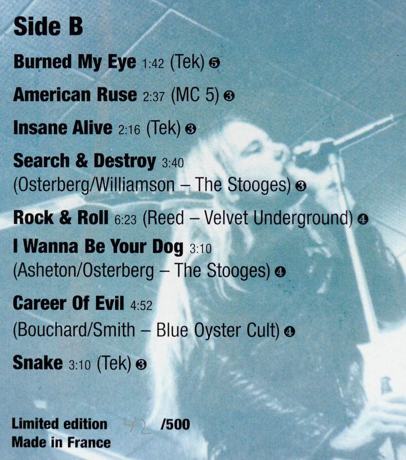 Side 2 features covers of Iggy & The Stooges, Velvet Underground and MC5.
